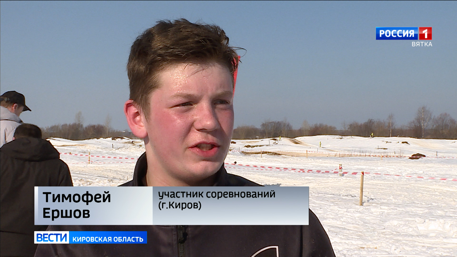 Тимофей Ершов из Кирова около двух лет занимается сноукроссом. Спортсмен считает, что это один из лучших видов спорта, он экстремальный и интересный, но здесь нужна хорошая психика, физическая подготовка, упорные тренировки, и грамотный наставник. Первым заездом сегодняшних стартов спортсмен остался не очень доволен.