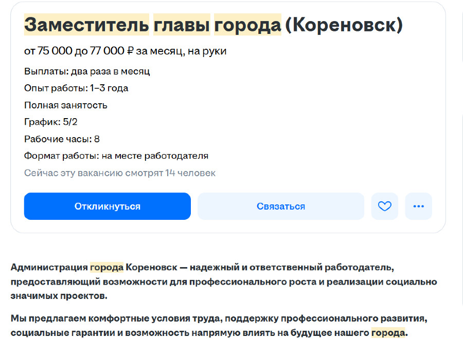Замглавы Кореновска ищут через платформу онлайн-рекрутинга