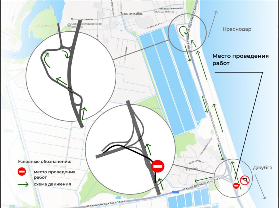 «Крюк» в 7 км: у Краснодарского водохранилища на неделю перекроют развязку на М-4 «Дон»