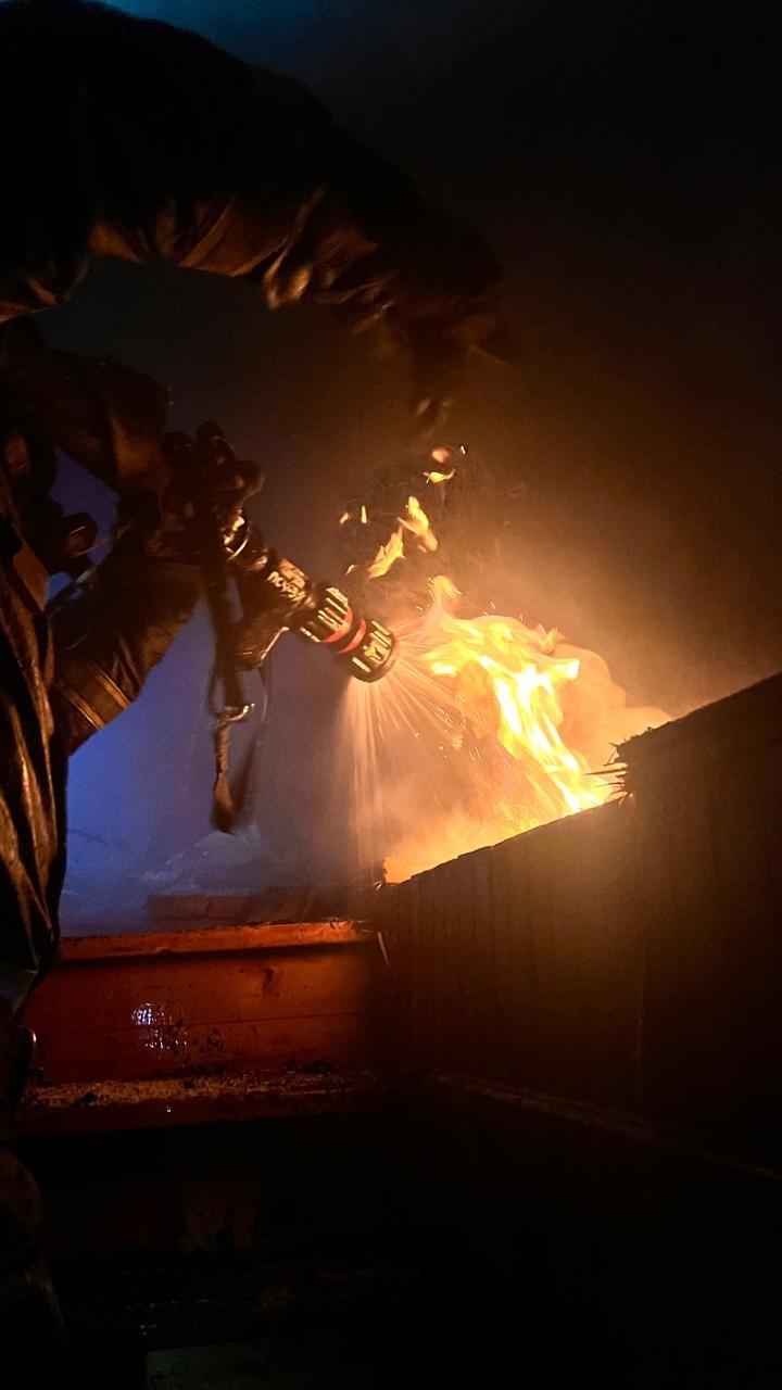 Сообщение о пожаре поступило в  01:46. Загорелся дом на улице Железнодорожная, 5.  Пожарные опубликовали кадры с места пожара: мощное пламя  распространилось по потолку.