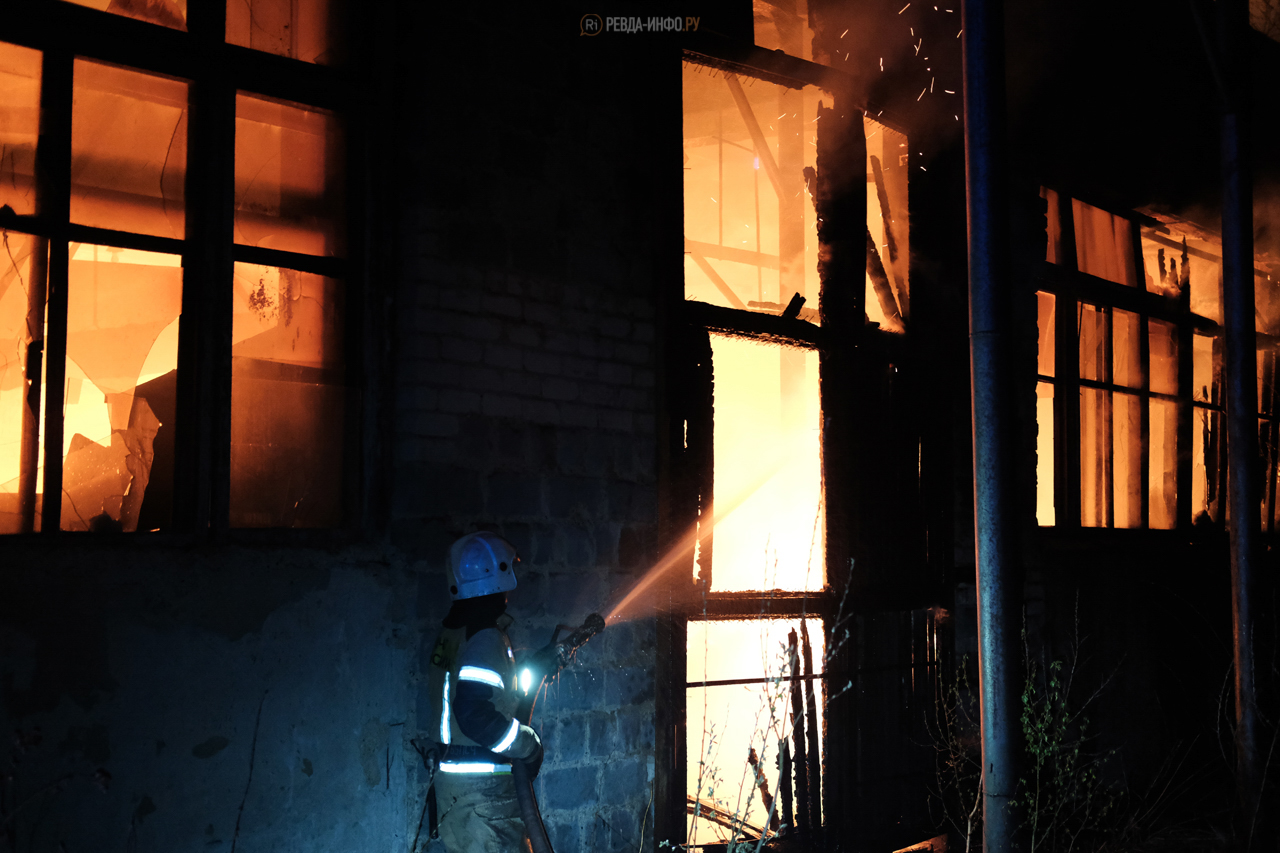 Пиломатериалы (а следом и деревянный пристрой) на заброшенном складе загорелись около 11 часов вечера (примерно в это время читатели массово начали присылать в бот Ревда-инфо (используйте его, если хотите прислать нам новость в телеграме) фотографии зарева в районе Гусевки.