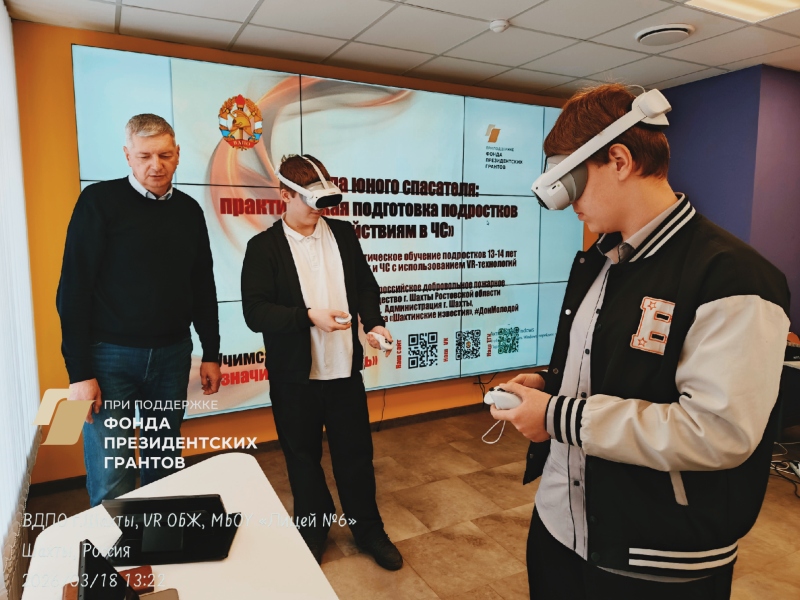 ВДПО г. Шахты при поддержке Фонда президентских грантов реализует проект «Школа юного спасателя: практическая подготовка подростков к действиям в чрезвычайных ситуациях», в рамках которого используются технологии виртуальной реальности.