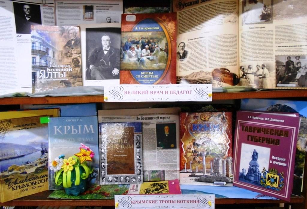 190 лет назад, 17 сентября 1832  года, в Москве родился величайший врач-терапевт и общественный деятель Сергей Петрович Боткин, чье имя неразрывно связано с Крымом. В преддверии этой знаменательной даты в симферопольской библиотеке-филиале №4 им. М.М. Коцюбинского начала работу литературно-краеведческая выставка «Корифей отечественной медицины».
