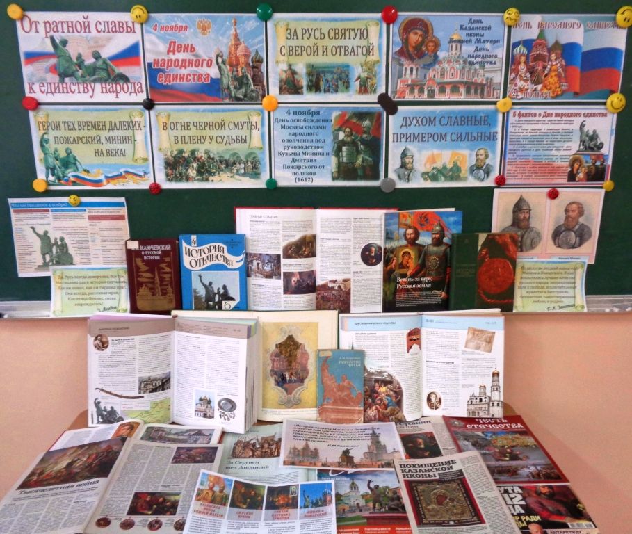 Информационным сопровождением мероприятия стала книжная выставка «За Русь святую с верой и правдой», центральное место на которой заняли издания, посвященные славному прошлому нашей Родины: «Полководцы России» и «История России» Юлии Школьник, «История России» Давида Шарковского, «Россия накануне «Смутного времени» Руслана Скрынникова, сборники «Великие полководцы», «Великие сражения», а также статьи из периодических журналов «Свой», «Честь Отечества», «Русская истории» и другие издания из фонда библиотеки.