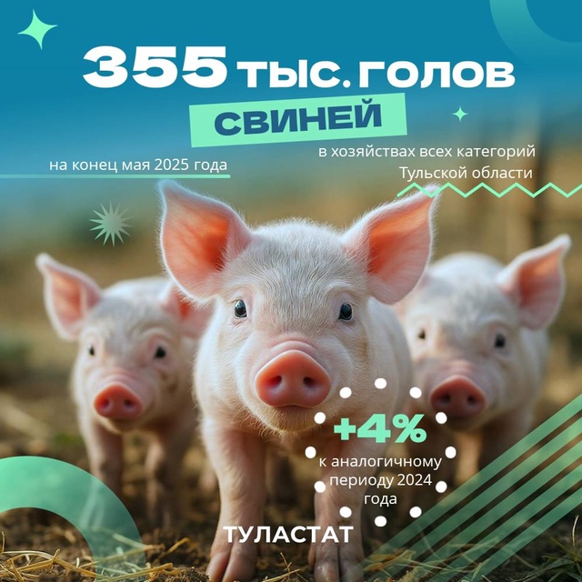 По данным на конец мая в Тульской области насчитывалось 355 тысяч голов свиней. При этом, как отметили специалисты, это касается хозяйств всех категорий.